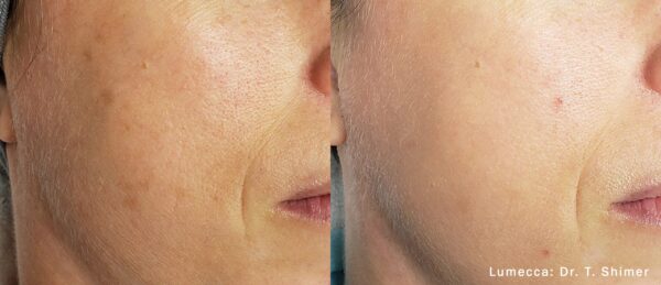 ルメッカは、従来の光治療(IPL)機器と比較して、シミや赤みの治療に最も有効とされる波長帯の光を、非常に高いエネルギー効率で照射できるのが最大の特徴です。そのため、1回の治療でも肌のトーンアップやシミへの反応を実感しやすく、従来の機器よりも少ない治療回数で満足な効果を得られることが期待できます。より早く、着実に肌質を改善したい方に適した治療法です。