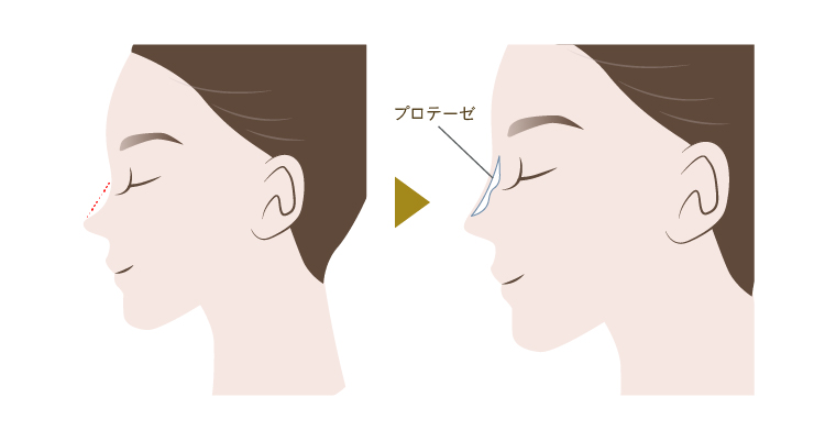 プロテーゼによる隆鼻術は、シリコン製の人工軟骨を鼻に挿入することで、鼻筋の通った高い鼻を形成する施術です。患者様一人ひとりの鼻の形に合わせてオーダーメイドのプロテーゼを使用し、半永久的な効果が期待できます。