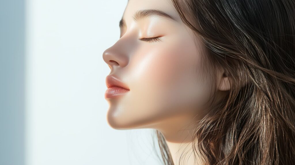 鼻筋がすっきりと通るようになると、顔全体が引き締まった印象になります。特に、横顔の美しさの基準とされるEライン(鼻先と顎先を結んだライン)が整うため、洗練された雰囲気を演出できます。